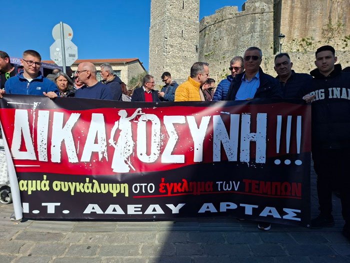 Με κεντρικό σύνθημα “Δεν ξεχνάμε, δεν συγχωρούμε” πραγματοποιήθηκε στην Άρτα η απεργιακή συγκέντρωση και πορεία για να τιμηθεί η μνήμη των 57 θυμάτων των Τεμπών.
