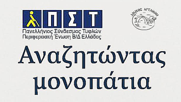 Η Περιφερειακή Ένωση Βορειοδυτικής Ελλάδος του Πανελληνίου Συνδέσμου Τυφλών, σε συνεργασία με τον Πανελλήνιο Σύνδεσμο Τυφλών, την Περιφερειακή Ομοσπονδία ΑμεΑ Στερεάς Ελλάδας και τον Δήμο Αρταίων, διοργανώνει ενημερωτική ημερίδα με τίτλο «Αναζητώντας μονοπάτια», την Παρασκευή 31 Οκτωβρίου 2025, στην Αίθουσα Διώνη στην Άρτα, στις 19:00 μ.μ.
