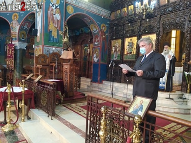 Το πρωί στον Μητροπολιτικό Ναό Αγίου Δημητρίου εψάλλει η επίσημη δοξολογία χωροστατούντος του Μητροπολίτη Άρτας κ.κ Καλλίνικου ενώ την Κυβέρνηση εκπροσώπησε ο Υφυπουργός Ψηφιακής Διακυβέρνησης Γιώργος Στύλιος. Στον πανηγυρικό της ημέρας ο εκπαιδευτικός Κωνσταντίνος Κωσταβασίλης αναφέρθηκε στην έναρξη της Επανάστασης και την σημασία της.