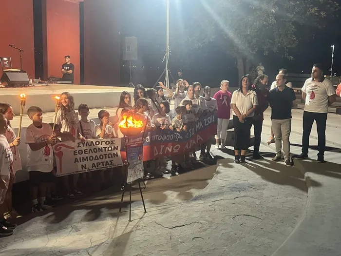 Σε μια όμορφη και συγκινητική τελετή στο θέατρο του παραποτάμιου πάρκου Άρτας άναψε ο βωμός με την φλόγα του εθελοντή αιμοδότη για να φωτίσει την ελπίδα και την προσφορά ζωής των εθελοντών που αιμοδοτούν και των δοτών μυελού των οστών που χωρίς κανένα ενδοιασμό προσφέρουν στον συνανθρώπους τους μια δεύτερη ευκαιρία στην ζωή.