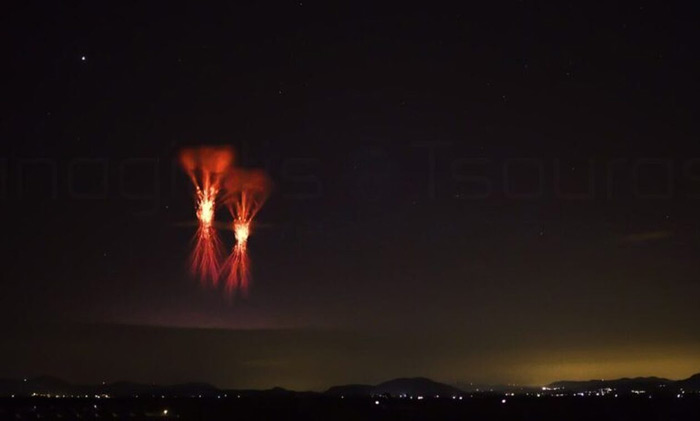 Το φαινόμενο εντοπίσθηκε πάνω από την Ικαρία, κατά τη διάρκεια καταιγίδας. Πρόκειται για ένα διπλό red sprite. Ο κεραυνός είχε ένταση 76kA, σύμφωνα με την υπηρεσία του Εθνικού Αστεροσκοπείου Αθηνών.