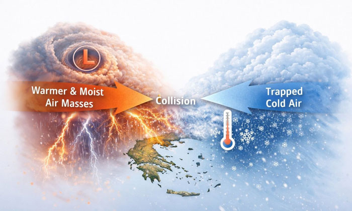 Μια «συνάντηση» που συμβαίνει σπάνια, αλλά θα αλλάξει την «ποιότητα» του καιρού και ίσως φέρει αναταραχές σε ακτοπλοϊκά και αεροπορικά δρομολόγια