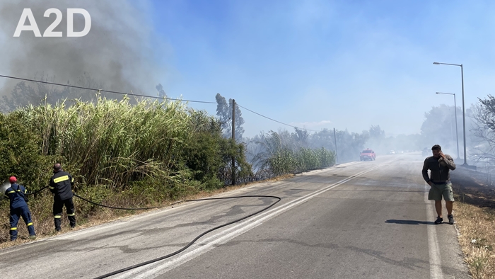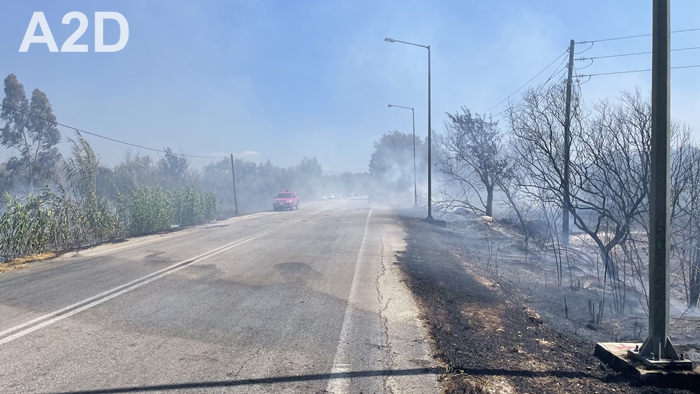 Η φωτιά εξαπλώθηκε με δραματική ταχύτητα, ενισχυόμενη από τους ανέμους και τις υψηλές θερμοκρασίες, περνώντας γρήγορα στην απέναντι πλευρά του δρόμου και απειλώντας άμεσα δασική έκταση της περιοχής. Οι φλόγες “κατάπιαν” ξερόχορτα, χαμηλή βλάστηση και τώρα κατευθύνονται προς πυκνόφυτο τοπίο, προκαλώντας μεγάλη κινητοποίηση των δυνάμεων πυρόσβεσης. καθώς και εναέρια μέσα. Η κυκλοφορία διακόπηκε προσωρινά στο σημείο για λόγους ασφαλείας,.