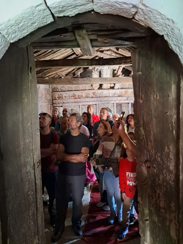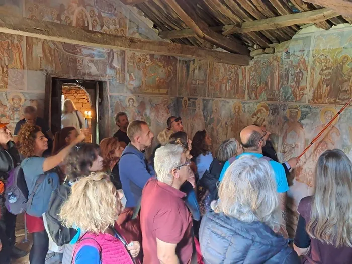 Οι περιπατητές ξεναγήθηκαν από τον πατέρα Γεώργιο- ιερομόναχο/εφημέριο της ενορίας του χωριού, στους μεταβυζαντινούς ναούς του Αγίου Γεωργίου και της Αγίας Παρασκευής Πιστιανών, κτίσματα του 17ου αιώνα με αξιόλογες τοιχογραφίες. Όπως τόνισε τόσο ο Ιερέας, όσο και η πρόεδρος της Κοινότητας Σοφία Αναγνωστάκη οι μεταβυζαντινοί ναοί με προτεραιότητα των Ι.Ν. Παναγίας και Αγ. Γεωργίου, χρήζουν την άμεση προστασία της πολιτείας για την αποκατάσταση των «πληγών», που τους άφησε ο χρόνος.