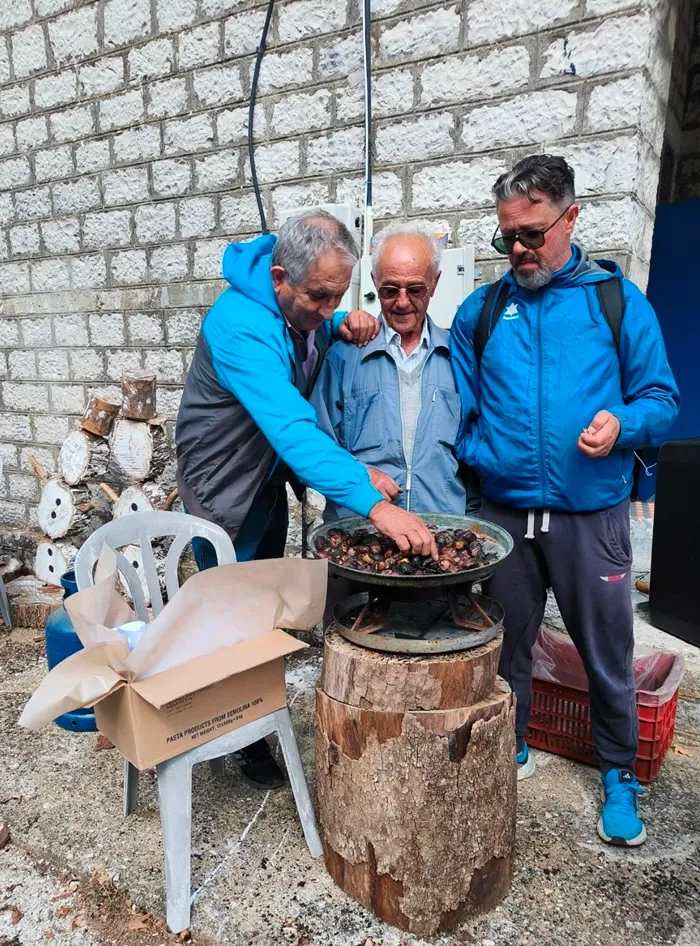 Στον τερματισμό, προσφέρθηκαν στους συμμετέχοντες ψητά κάστανα, παραδοσιακές πίτες και χειροποίητα γλυκά, που ετοίμασαν με περισσή χαρά, οι γυναίκες του χωριού, κρασί και τσίπουρο.