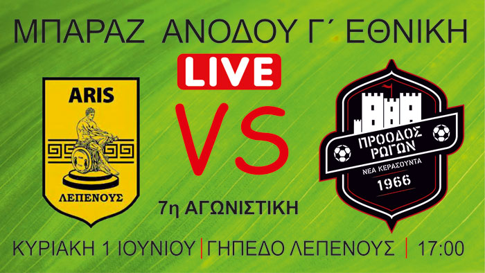 Η αυλαία πέφτει, αλλά το δράμα συνεχίζεται. Η τελευταία πράξη των μπαράζ ανόδου για τη Γ’ Εθνική μας επιφυλάσσει ακόμη μία καυτή αναμέτρηση, με τον Άρη Λεπενούς να υποδέχεται την αδιάφορη – αλλά υπολογίσιμη – Πρόοδο Ρωγών, σε έναν αγώνα που μπορεί να μην κρίνει πρωτιά, αλλά σίγουρα κρατάει αναμμένη τη σπίθα της ελπίδας για τους Λεπενιώτες.