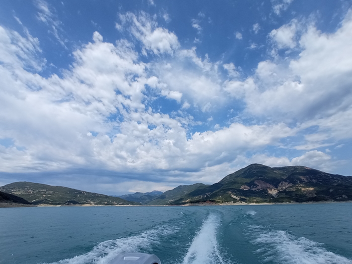 Πρωταγωνιστές της διαδρομής είναι δύο άνθρωποι που ξέρουν τη λίμνη όσο λίγοι: ο Σάκης και ο Γιάννης. Δεν είναι απλώς οδηγοί, αλλά ξεναγοί με μεράκι, που σε οδηγούν μέσα στην ιστορία και τα μυστικά του τόπου. Η διαδρομή πάνω στη λίμνη είναι από μόνη της μοναδική. Τα νερά αλλάζουν χρώμα ανάλογα με το φως του ήλιου – άλλοτε γαλαζοπράσινα, άλλοτε σκούρα σαν μελάνι – και γύρω υψώνονται βουνά που μοιάζουν να αγκαλιάζουν το τοπίο. Μικρά ξέφωτα, απόκρημνες πλαγιές και σπάνια όμορφα σημεία που ξεπροβάλλουν μέσα από τη βλάστηση, συνθέτουν ένα σκηνικό σχεδόν κινηματογραφικό- ο πύργος των Τόκκων, το νησί του Αγίου Νικολάου, τα πνιγμένα χωριά, εξωτικό τοπίο….