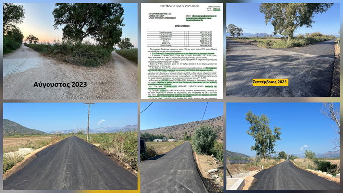Η πολιτική είναι πράξη ευθύνης και συνέχειας. Τα προηγούμενα χρόνια δρομολογήσαμε: μελέτες, χρηματοδότηση 4 εκ. € από το πρόγραμμα «ΤΡΙΤΣΗΣ», δημοπράτηση και υπογραφή σύμβασης του έργου το 2023. Με χαρά βλέπουμε, οι ασφαλτοστρώσεις να ολοκληρώνονται και να παραδίδονται στους δημότες, ενισχύοντας την καθημερινότητά τους και την τοπική παραγωγή.