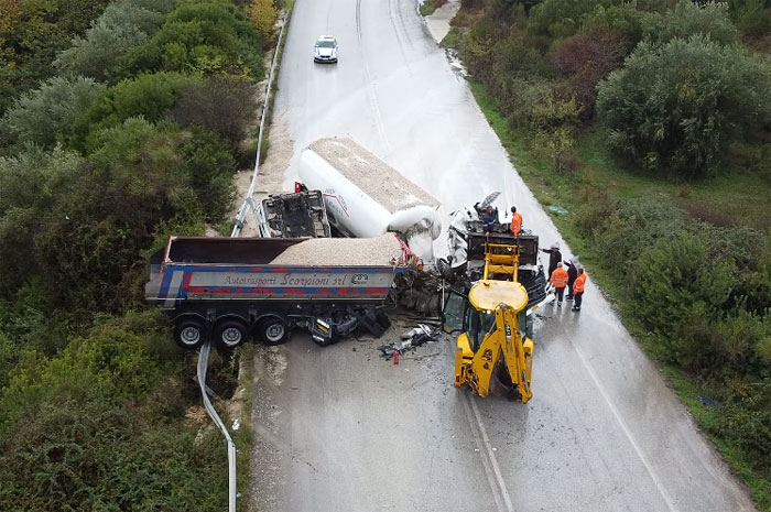 Πλαγιομετωπική σύγκρουση με δύο νταλίκες στην Ηγουμενίτσα