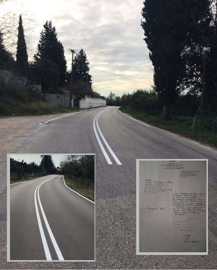 Στις 24 Απριλίου 2025, υπέβαλα εγγράφως αίτηση προς την Περιφερειακή Ενότητα Άρτας, επισημαίνοντας την επικίνδυνη κατάσταση που είχε διαμορφωθεί στο συγκεκριμένο οδικό δίκτυο. Οι οριογραμμές και οι γραμμές διαχωρισμού αντίθετων κατευθύνσεων είχαν σβηστεί πλήρως, δημιουργώντας σοβαρούς κινδύνους για την οδική ασφάλεια των πολιτών.
