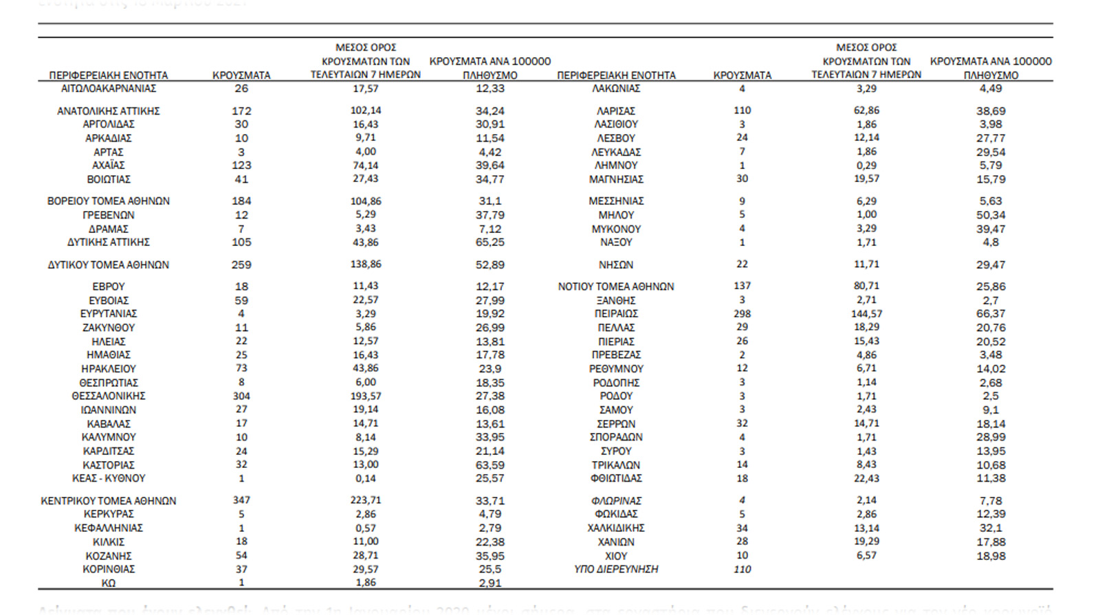 Τα στοιχεία που παρουσιάζονται αφορούν περιστατικά από την επιδημιολογική επιτήρηση της νόσου από το νέο κορωνοϊό (COVID19), με βάση τα δεδομένα που έχουν δηλωθεί στον ΕΟΔΥ και καταγραφεί μέχρι τις 18 Μαρτίου 2021 (ώρα 15:00).