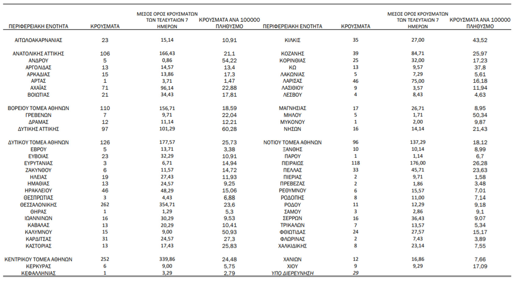 (ημερήσια μεταβολή +0.7%), εκ των οποίων 51.4% άνδρες. Με βάση τα επιβεβαιωμένα κρούσματα των τελευταίων 7 ημερών, 77 θεωρούνται σχετιζόμενα με ταξίδι από το εξωτερικό και 3.313 είναι σχετιζόμενα με ήδη γνωστό κρούσμα.