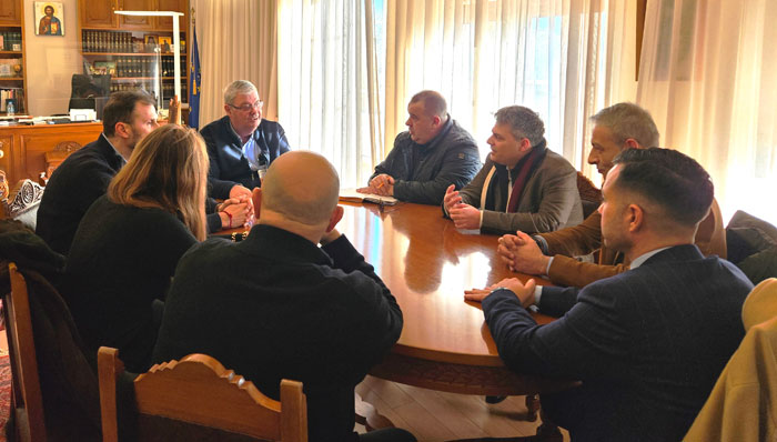 Το Προεδρείο της Πανελλήνιας Ομοσπονδίας Ξενοδόχων επισκέφτηκε σήμερα τον Περιφερειάρχη Ηπείρου κ. Αλέξανδρο Καχριμάνη, με τον οποίο συζήτησε θέματα που αφορούν τον κλάδο, ως και γενικότερα ζητήματα για τις τουριστικές υποδομές.