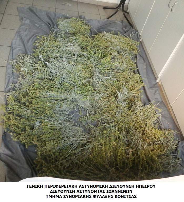 Ειδικότερα, ύστερα από αξιοποίηση πληροφοριών, κλιμάκιο αστυνομικών του Τμήματος Συνοριακής Φύλαξης Κόνιτσας, σε συνεργασία με αστυνομικούς του Αστυνομικού Τμήματος Κόνιτσας και του Αστυνομικού Σταθμού Πυρσόγιαννης, εντόπισαν και συνέλαβαν τον αλλοδαπό, όταν διαπίστωσαν ότι είχε προβεί παράνομα στη συλλογή ποσότητας του αρωματικού – θεραπευτικού φυτού σιδερίτης («τσάι του βουνού»), βάρους -7- κιλών και -930- γραμμαρίων, η οποία κατασχέθηκε.