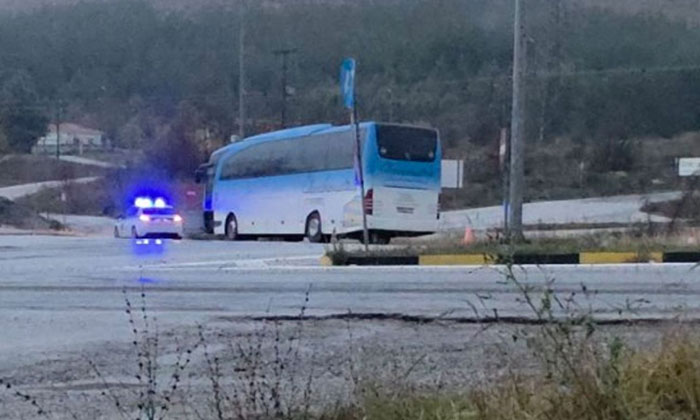 Το λεωφορείο που μετέφερε τους εργαζομένους της ΔΕΗ στην εργασία τους
