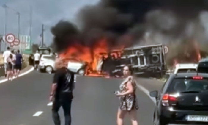 Κάτω από άγνωστες μέχρι στιγμής συνθήκες ένα φορτηγό συγκρούστηκε με δύο οχήματα, με αποτέλεσμα μάλιστα να ξεσπάσει φωτιά, και να χάσουν τη ζωή τους τρία άτομα.