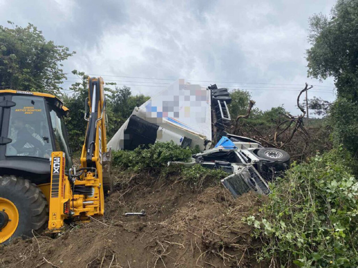 Χαρακτηριστικό είναι πως απαιτήθηκε χρήση μηχανήματος Jcb γαι την μετακίνηση μεγάλου όγκου χώματος στο οποίο προσέκρουσε η καμπίνα της νταλίκας.