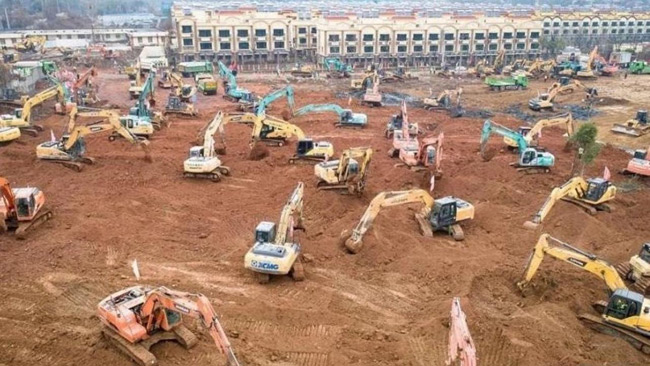 Σύμφωνα με το CGTN, οι εργασίες ξεκίνησαν το βράδυ της Πέμπτης. Στο γιγαντιαίο εργοτάξιο που μπορείτε να δείτε στις παρακάτω εικόνες, οι Κινέζοι θα εκμεταλλευτούν χώρο 25.000 τετραγωνικών μέτρων, ώστε να ανεγερθεί το ειδικό νοσοκομείο, το οποίο θα περιλαμβάνει -μεταξύ άλλων- 1.000 κλίνες.