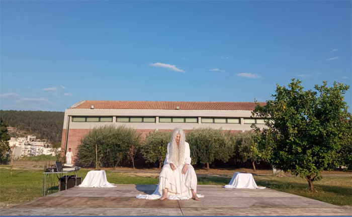 Στις 19 και 20 Αυγούστου 2025, στον προαύλιο χώρο του Αρχαιολογικού Μουσείου Άρτας, η θεατρική ομάδα του Περικλή Μουστάκη παρουσίασε την παράσταση «Ρόδα στο μαντίλι: Ουρανός απ’ άλλους τόπους» στο πλαίσιο της δράσης Η Ελλάδα – ένας πολιτισμός. Εκεί, μέσα στις σκιές των επιτύμβιων στηλών και αρχαίων λίθων, ακούστηκε η φωνή της Αλέξως, της μάνας του συγγραφέα Σωτήρη Δημητρίου. Κι η φωνή αυτή δεν ήρθε για να ψιθυρίσει και να μας διηγηθεί οποιονδήποτε πόνο. Ήρθε για να κλονίσει, να ξυπνήσει, να γυρίσει το βλέμμα μας προς τις ρίζες, στο χώμα που σπάνια αντικρίζουμε με μια γλώσσα που την είχαμε κάποτε ως νανούρισμα από το στόμα των γιαγιάδων μας -Ω ρε κόσμε αναφωνεί η Αλέξω στον κόσμο.