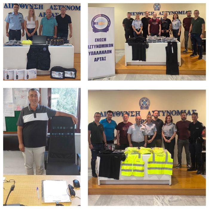 Συγκεκριμένα, η Διμοιρία Υποστήριξης εξοπλίστηκε με γάντια, ασυρμάτους και αδιάβροχα, ενώ στην Ο.Π.Κ.Ε. διατέθηκαν νέες στολές και φακοί. Στο Γ΄ Τμήμα Τροχαίας Αυτοκινητοδρόμων Αντιρρίου–Ιωαννίνων και στο Τμήμα Τροχαίας Άρτας παραδόθηκαν φωσφοριζέ γιλέκα, φακοί, ψηφιακά αποστασιόμετρα και υλικοτεχνικός εξοπλισμός. Το Α.Τ. Γεωργίου Καραϊσκάκη ενισχύθηκε με υπολογιστή, ντουλάπα, φωσφοριζέ γιλέκα και φακό, ενώ στο Α.Τ. Κεντρικών Τζουμέρκων κατασκευάστηκε ντουλάπα και παραδόθηκε επιπλέον εξοπλισμός. Στο Τμήμα Δίωξης και Εξιχνίασης Εγκλημάτων κατασκευάστηκε φοριαμός για τις ανάγκες των συναδέλφων και παραδόθηκαν φακοί, ενώ στην Ομάδα Δίωξης Ναρκωτικών χορηγήθηκαν γιλέκα. Το Α.Τ. Άρτας παρέλαβε φακούς και ασυρμάτους, ενώ στην Ομάδα ΔΙ.ΑΣ. δόθηκαν νέες στολές.