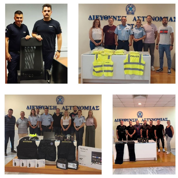 Συγκεκριμένα, η Διμοιρία Υποστήριξης εξοπλίστηκε με γάντια, ασυρμάτους και αδιάβροχα, ενώ στην Ο.Π.Κ.Ε. διατέθηκαν νέες στολές και φακοί. Στο Γ΄ Τμήμα Τροχαίας Αυτοκινητοδρόμων Αντιρρίου–Ιωαννίνων και στο Τμήμα Τροχαίας Άρτας παραδόθηκαν φωσφοριζέ γιλέκα, φακοί, ψηφιακά αποστασιόμετρα και υλικοτεχνικός εξοπλισμός. Το Α.Τ. Γεωργίου Καραϊσκάκη ενισχύθηκε με υπολογιστή, ντουλάπα, φωσφοριζέ γιλέκα και φακό, ενώ στο Α.Τ. Κεντρικών Τζουμέρκων κατασκευάστηκε ντουλάπα και παραδόθηκε επιπλέον εξοπλισμός. Στο Τμήμα Δίωξης και Εξιχνίασης Εγκλημάτων κατασκευάστηκε φοριαμός για τις ανάγκες των συναδέλφων και παραδόθηκαν φακοί, ενώ στην Ομάδα Δίωξης Ναρκωτικών χορηγήθηκαν γιλέκα. Το Α.Τ. Άρτας παρέλαβε φακούς και ασυρμάτους, ενώ στην Ομάδα ΔΙ.ΑΣ. δόθηκαν νέες στολές.