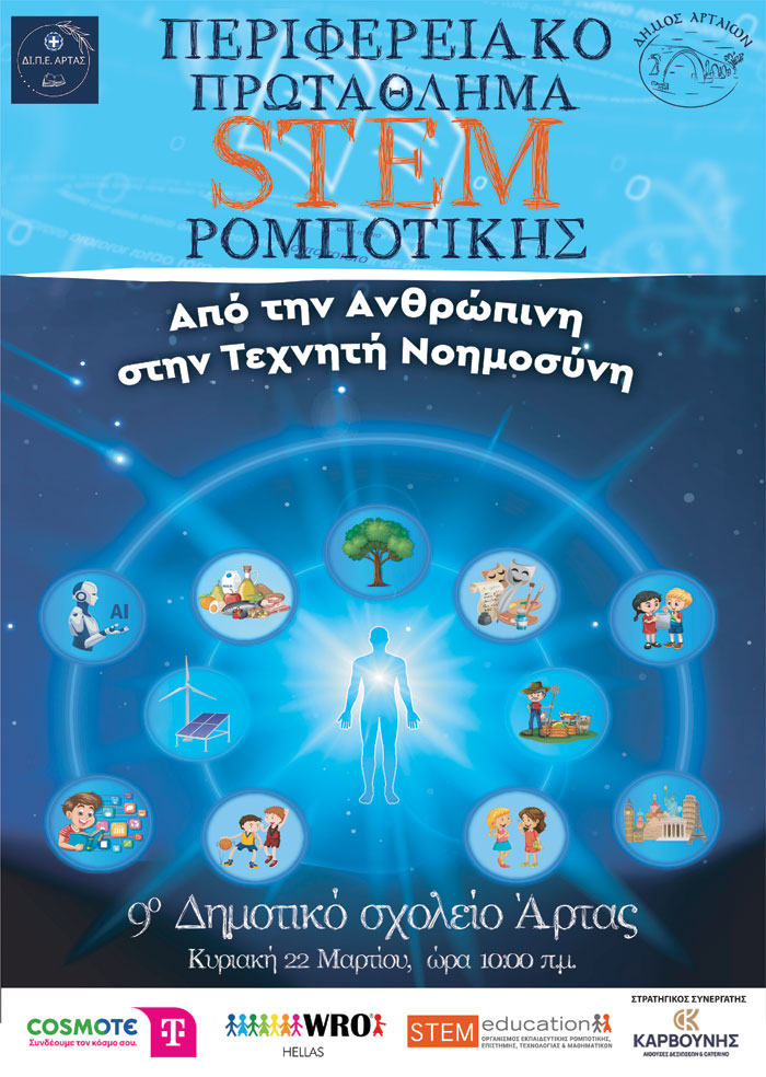 Η Διεύθυνση Πρωτοβάθμιας Εκπαίδευσης (ΔΙ.Π.Ε.) Άρτας, σας ενημερώνει ότι ο Περιφερειακός Διαγωνισμός Ηπείρου, στο πλαίσιο του Πανελλήνιου Διαγωνισμού Ρομποτικής STEME ducation 2026, θα πραγματοποιηθεί για το σχολικό έτος 2025 -2026 στην Άρτα, την Κυριακή 22 Μαρτίου 2026 και ώρα 10:00΄π.μ., στο 9ο Δημοτικό Σχολείο Άρτας.